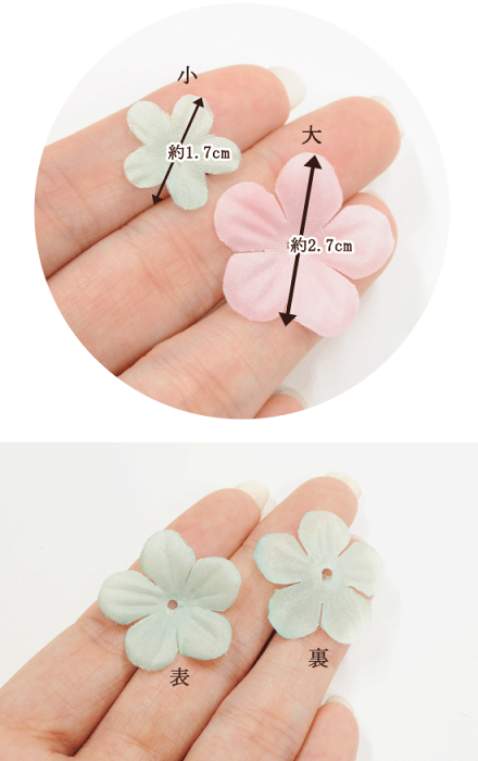 )オーガンジー花びらパーツ全2サイズ 各4色20枚入りふんわりとした花びらのパーツです。