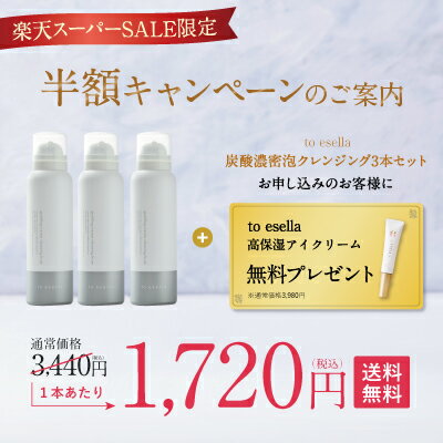 【スーパーSALE限定20%OFFクーポン】★楽天1位★炭酸濃密泡 クレンジング 毛穴 毛穴レス 毛穴汚れ 角質 くすみ ごわつき to esella セラミド ヒアルロン酸 コラーゲン 炭酸エステ クレンジング メイク落とし 化粧落とし 敏感肌 マツエクOK W洗顔不要 約1ヵ月分 1本100g