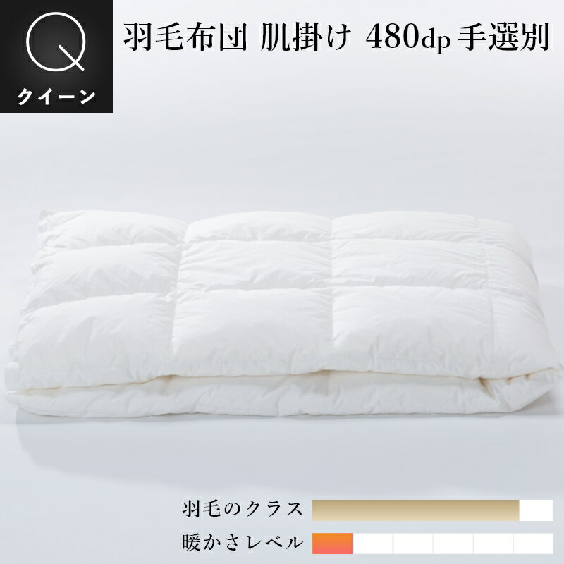 羽毛肌掛け布団 クイーン:210×210cm限定480dpホワイトグースダウン超軽量生地:綿100% 収納袋付レギュラー羽毛掛布団の4分の1の厚みのダウンケット2枚合わせや夏用におすすめ日本製 受注生産10年保証付き