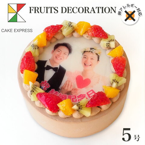 敬老の日 アレルギー対応 卵不使用 写真ケーキ フルーツ三種生チョコクリーム 5号バースデーケーキ 誕生日ケーキ 【送料無料】 フォトケーキ イラスト プリント 4〜6名様用 卵アレルギー チョコレートケーキ サプライズ 冷凍