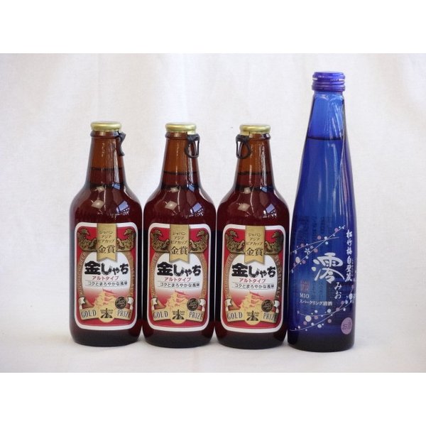 【商品名】クラフトビールパーティ4本セット 金しゃちアルト330ml×3本 日本酒スパークリング清酒(澪300ml)【内容】●金しゃち赤ラベルアルト330ml(愛知県) 美しいルビー色とロースト麦芽の程よいコクとまろやかな風味。