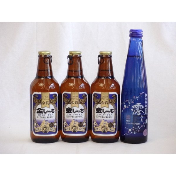 【商品名】クラフトビールパーティ4本セット 金しゃちピルスナー330ml×3本 日本酒スパークリング清酒(澪300ml)【内容】●金しゃち青ラベルピルスナー330ml(愛知県) 明るいゴールドの色合いにきめ細かく豊かな泡立ち。