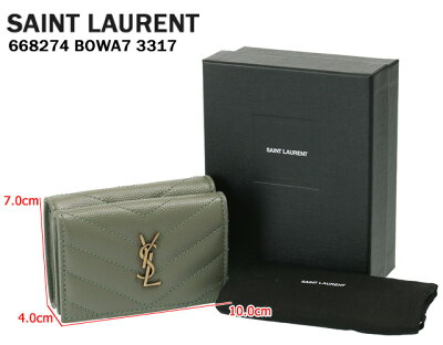 【PT5倍】サンローラン・パリ/SAINT LAURENT PARIS"カサンドラ マトラッセ オリガミ タイニーウォレット(グレイン・ド・プードルエンボスレザー)" キャビアスキン・3つ折り財布・コンパクトウォレット・小財布(セージ・カーキグリーン)668274 BOWA7 3317/SAGE