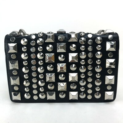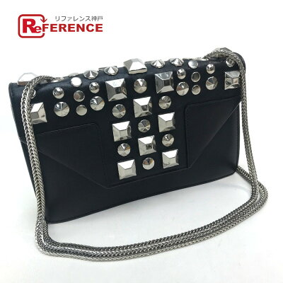 SAINT LAURENT PARIS サンローランパリ スタッズ ポシェット ショルダーバッグ レザー レディース ブラック×シルバー金具 【中古】