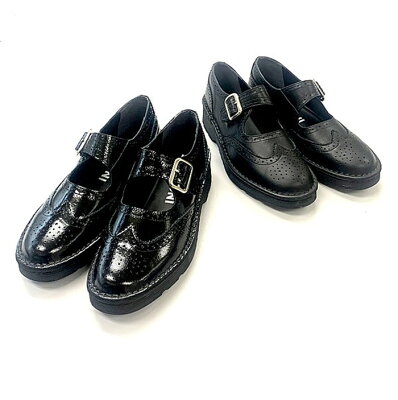 日本製 本革 ウイングチップシューズ レザー オックスフォードシューズ メダリオン 黒 ブラック 3E 4E ベルト ストラップ レディース マニッシュシューズ