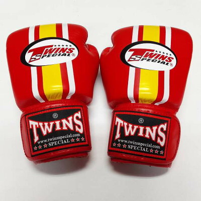TWINS SPECIAL ボクシンググローブ 8oz 赤黄白ライン /ボクシング/ムエタイ/グローブ/キック/フィットネス/本革製/ツインズ/大人用/オンス
